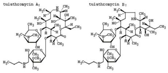 泰拉霉素(Tulathromycin)是一種新近上市且為動物專用的大環(huán)內(nèi)酯類半合成抗生素,分子式為C41H79N3O12(分子量806)。