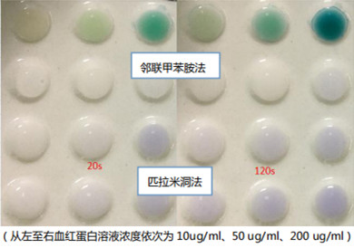 加入試劑后初呈淺綠色,逐漸呈明顯藍褐色